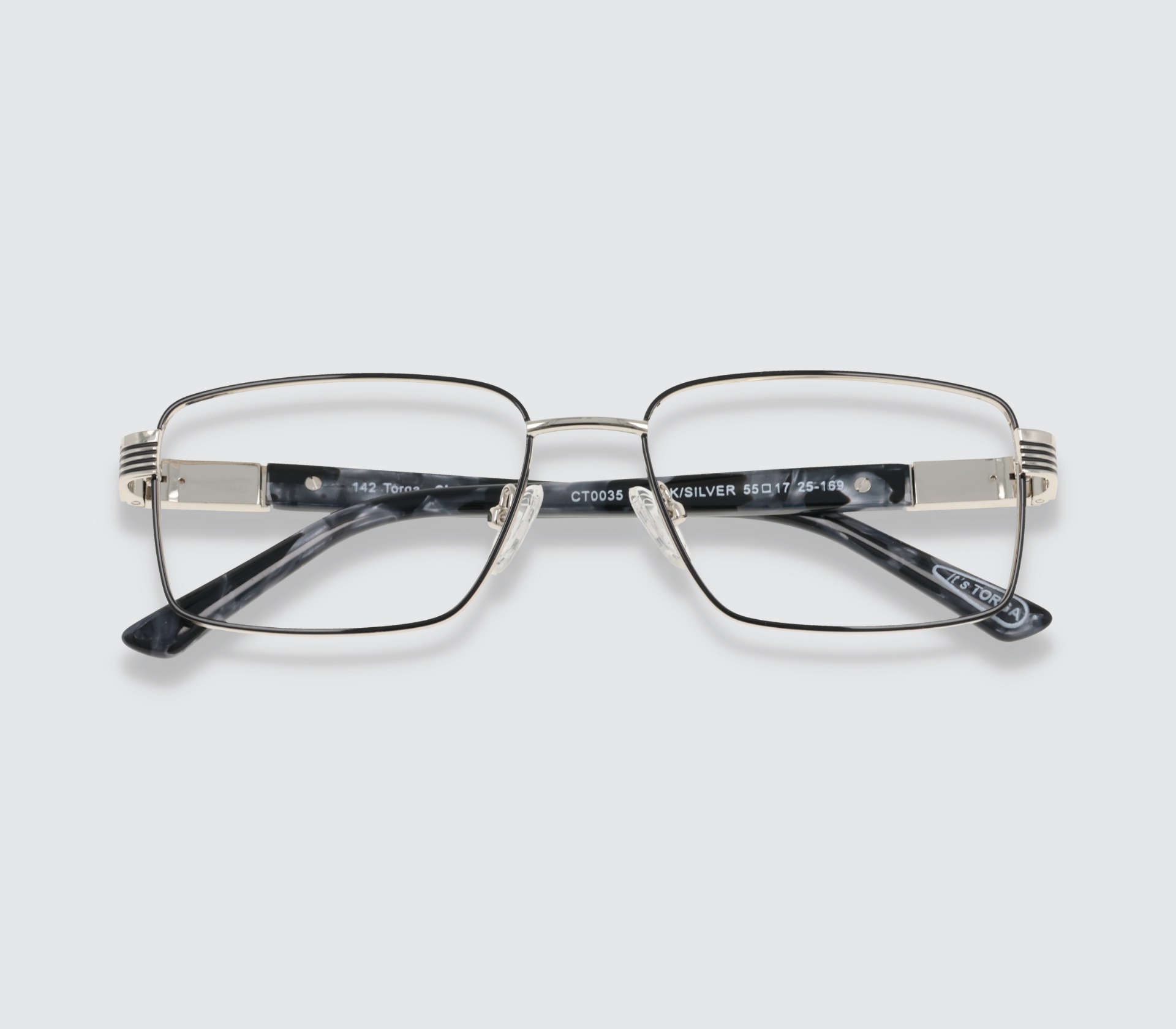 Torga designed & manufactured metal frame with prescription lenses.