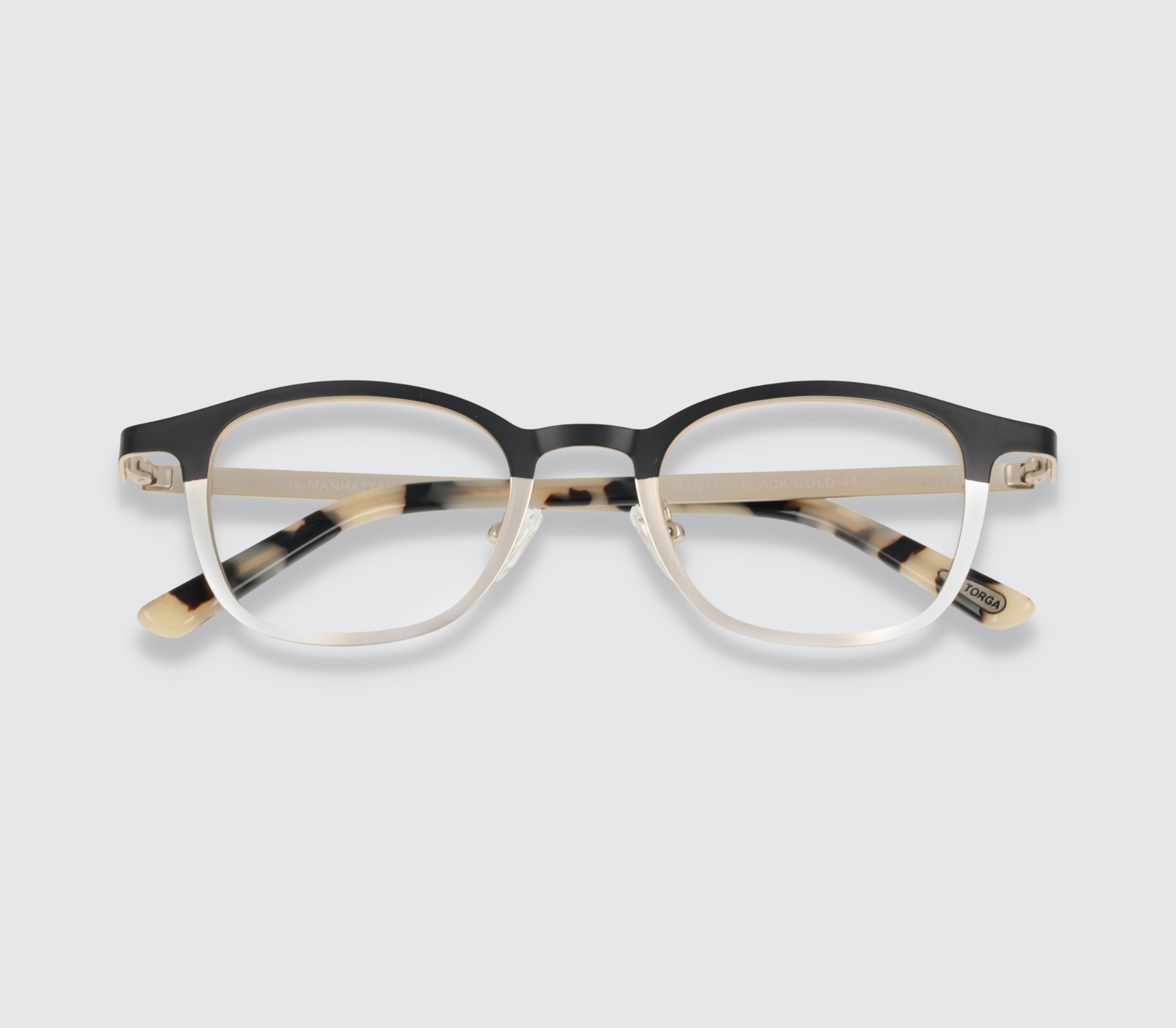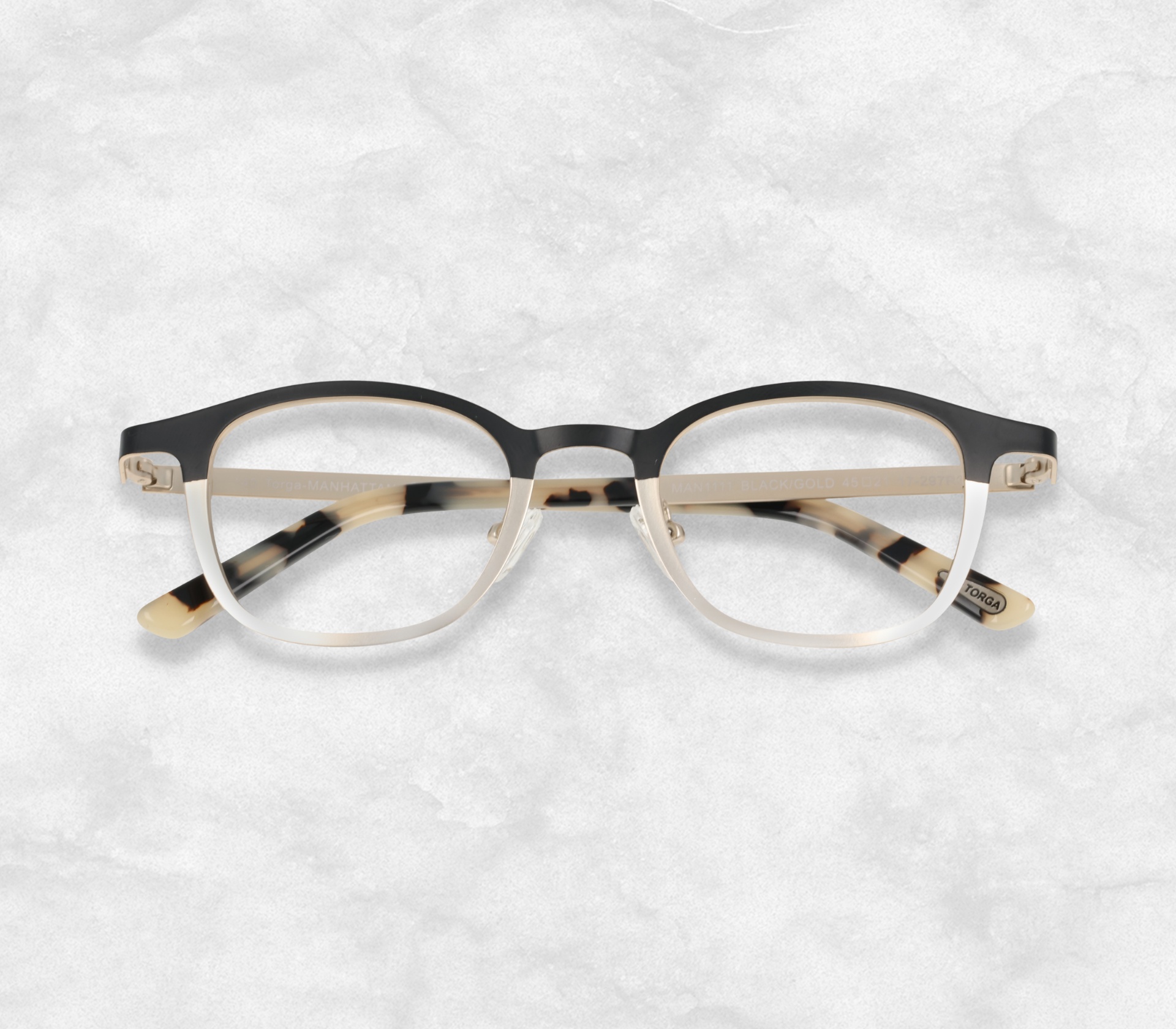 Torga designed & manufactured metallic frame with prescription lenses.