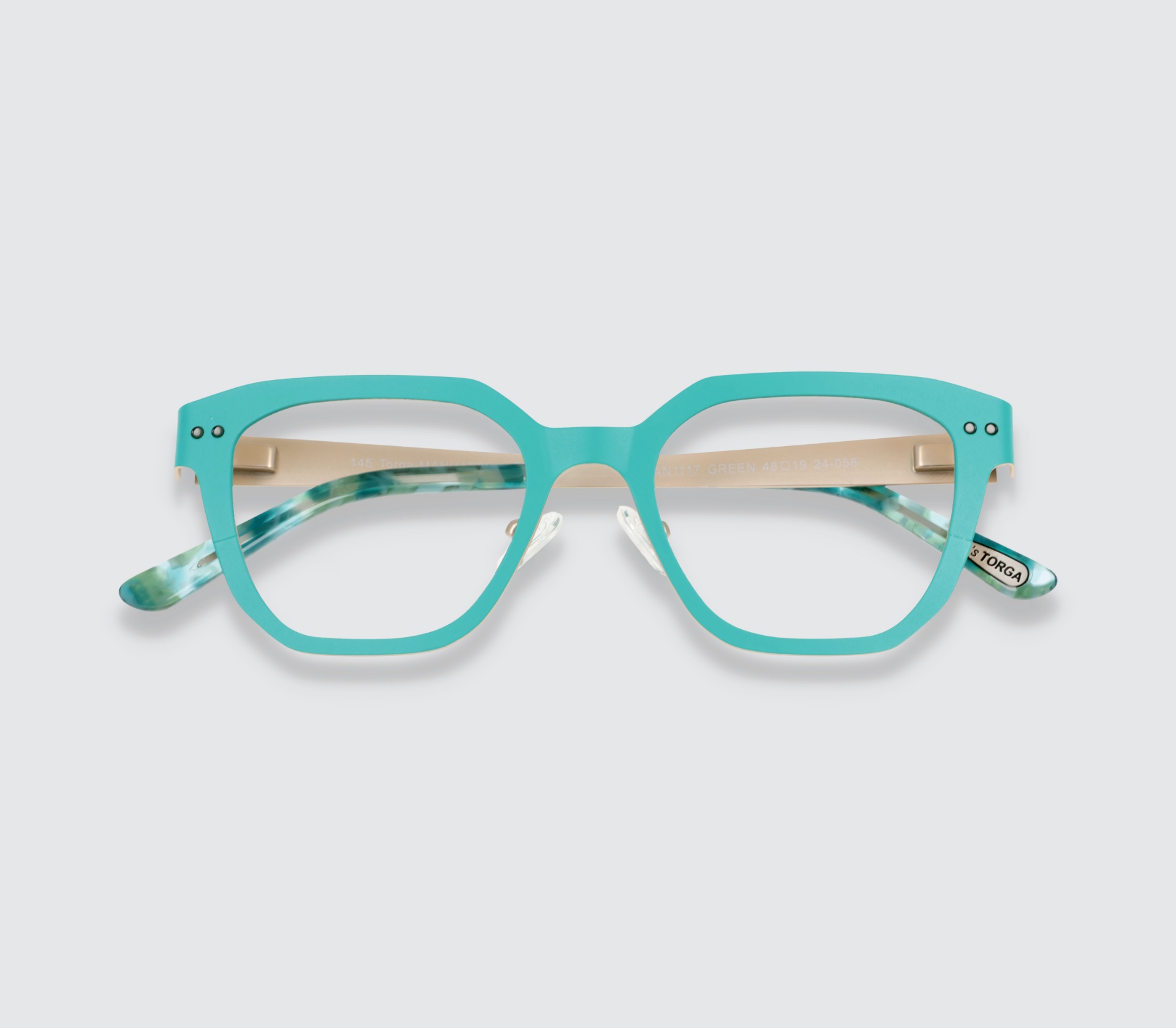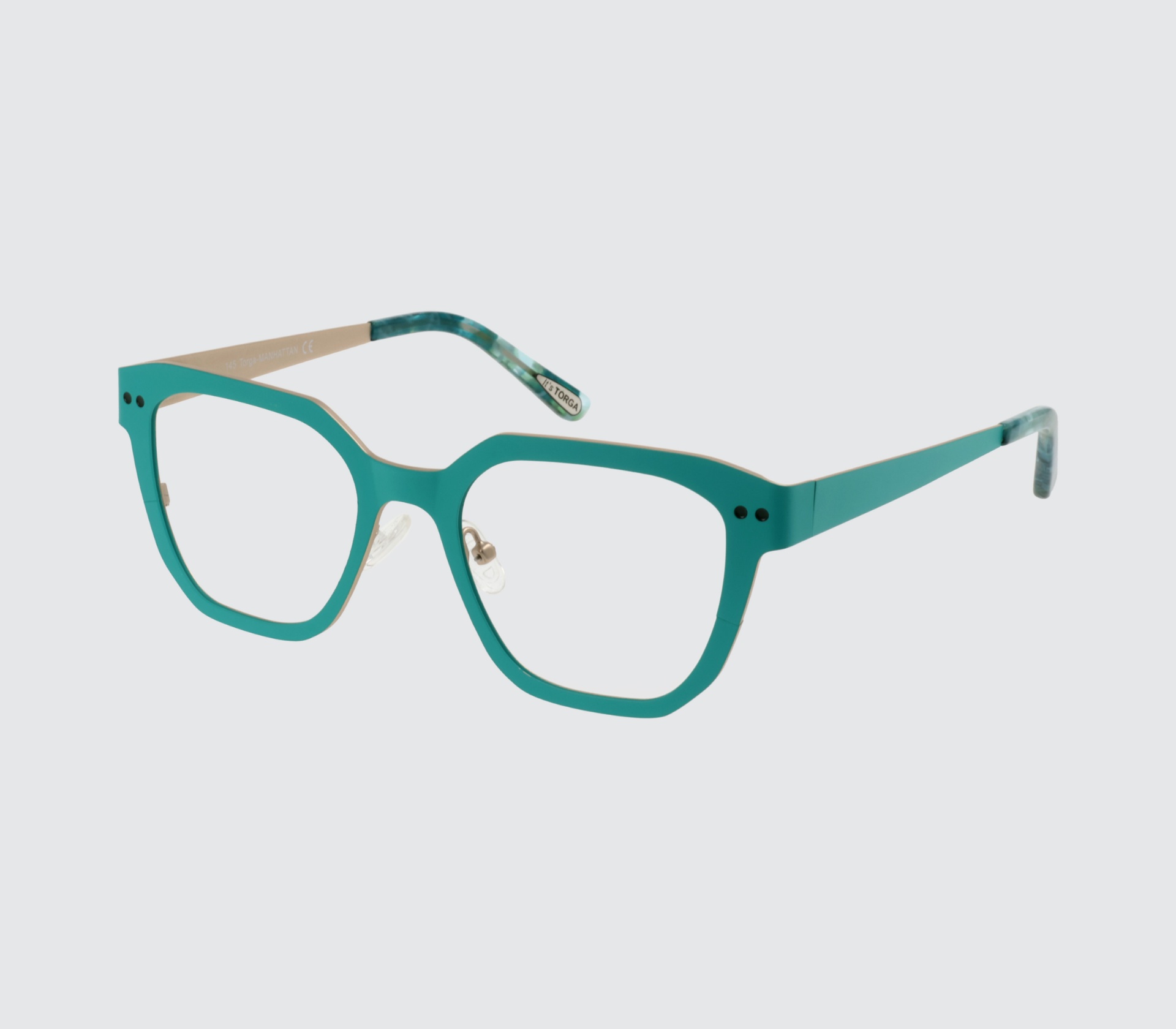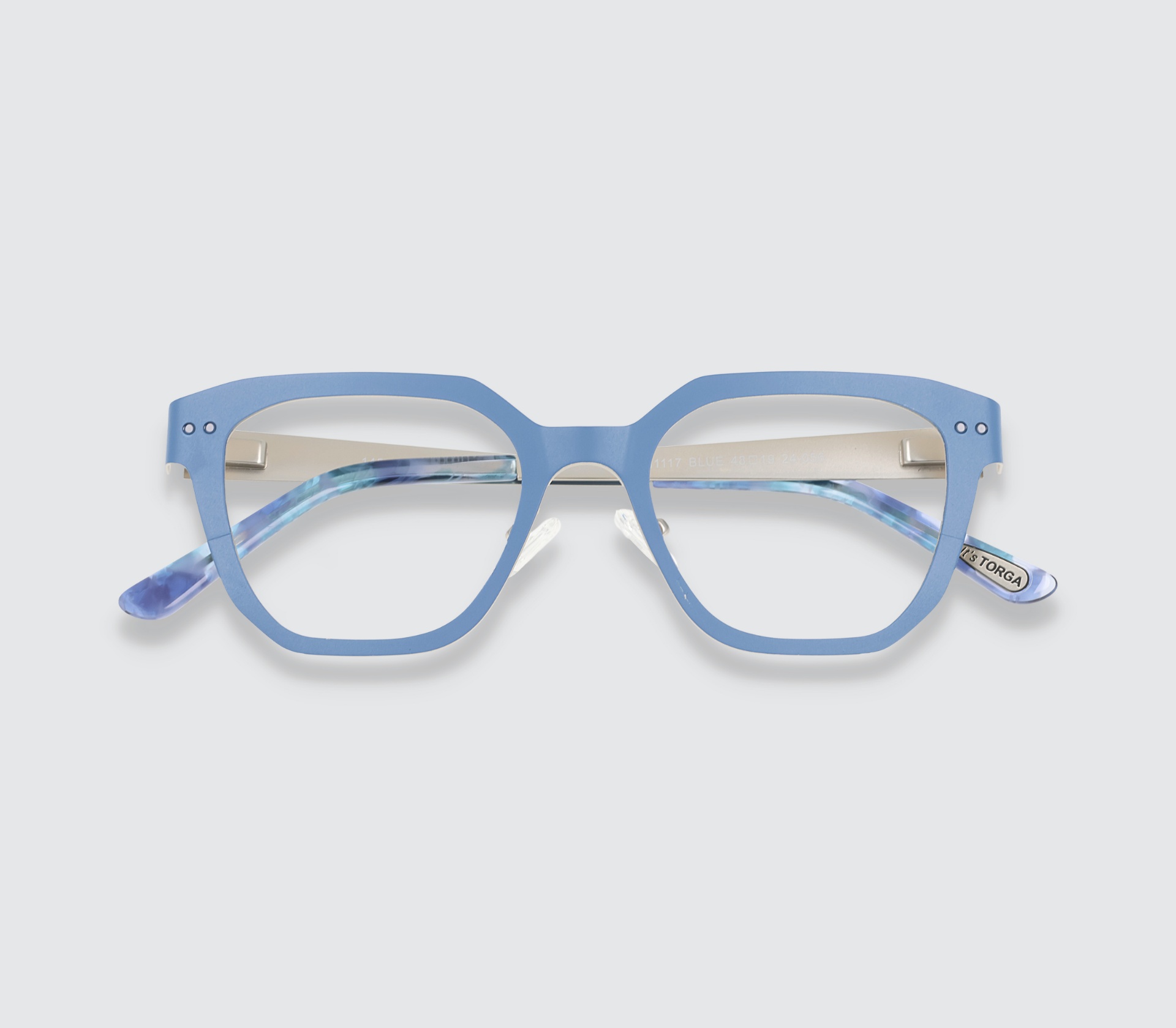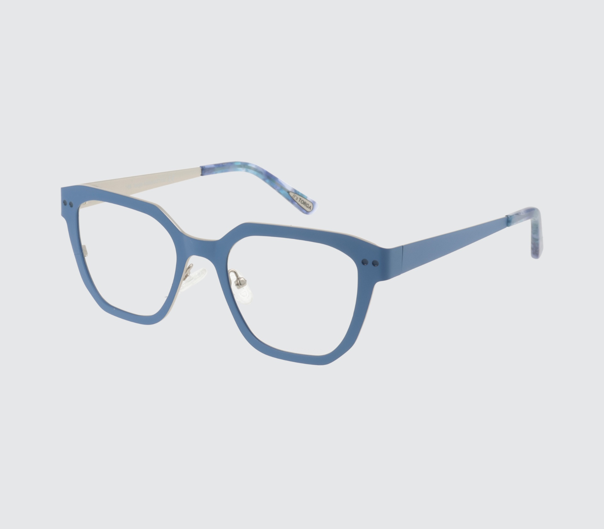 Torga designed & manufactured metallic frame with prescription lenses.