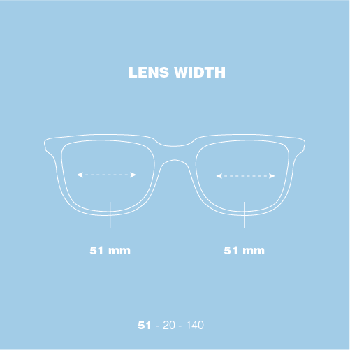 Lens Width: 51 Bridge: 20 Temple: 140