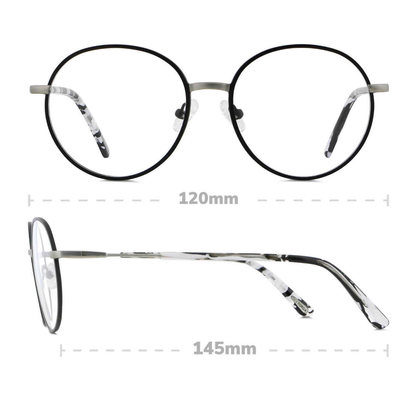 Our Torga Femina 6044 frames are available in Silver, Purple, Black and Green colours and feature a classic round eyeshape with detailed temple arms.