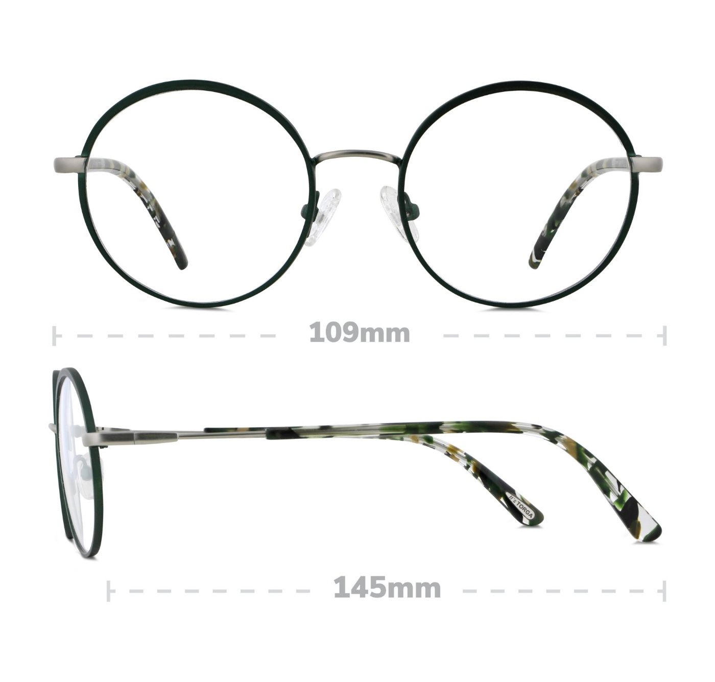 Our Torga Femina 6045 frames are available in Silver, Purple, Black and Green colours and feature a classic round eyeshape with detailed temple arms.
